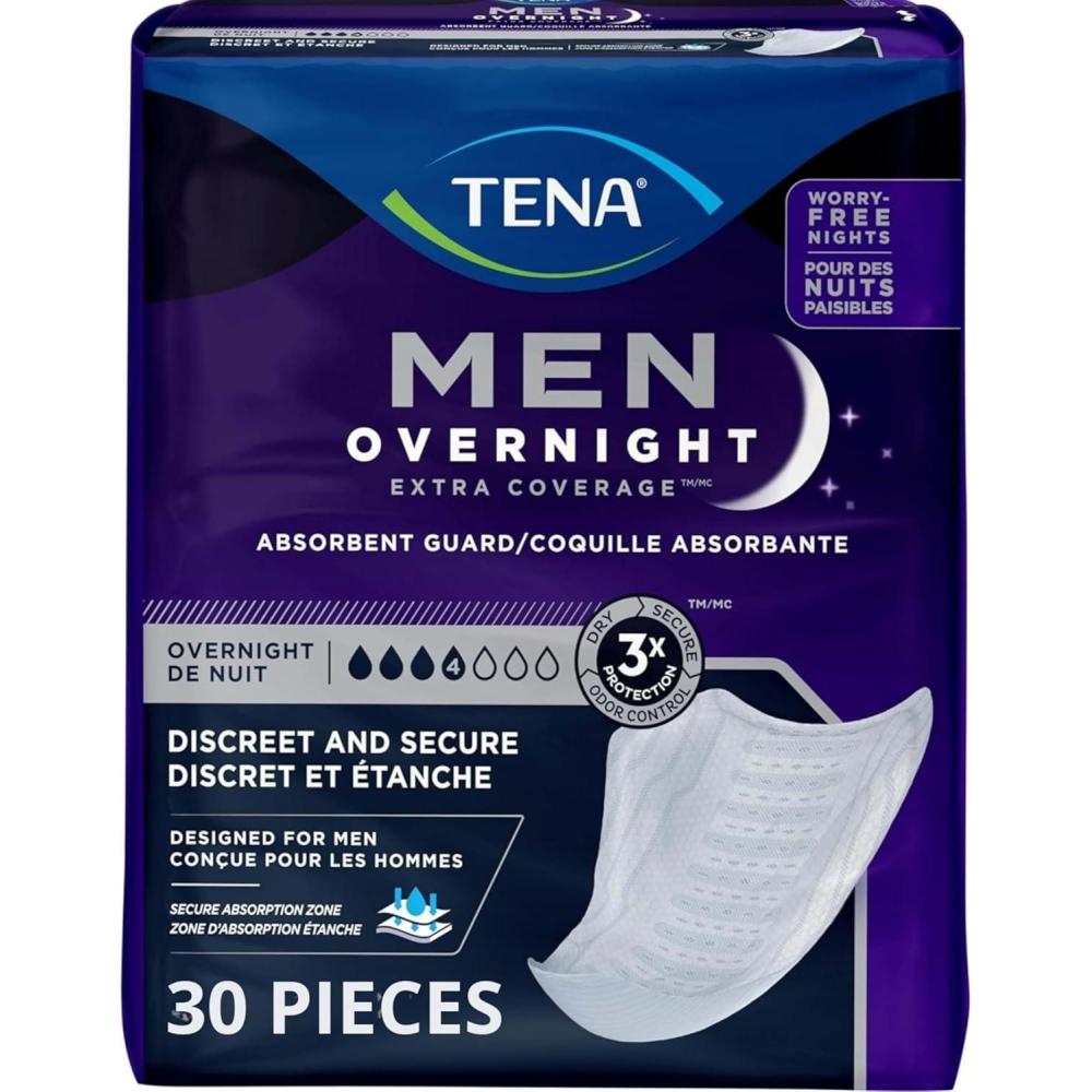 TENA Incontinence Guards, Overnight Absorbency & Advanced Odor Protection, Incontinence Guards for Men, 90 ct(30 Count)