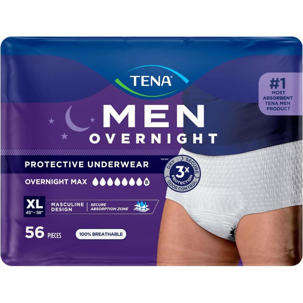 Tena Men Protective Incontinence Underwear Overnight Max Absorbency, L, 56 Ct, 34-44in (Packaging May Vary)(X-Large)