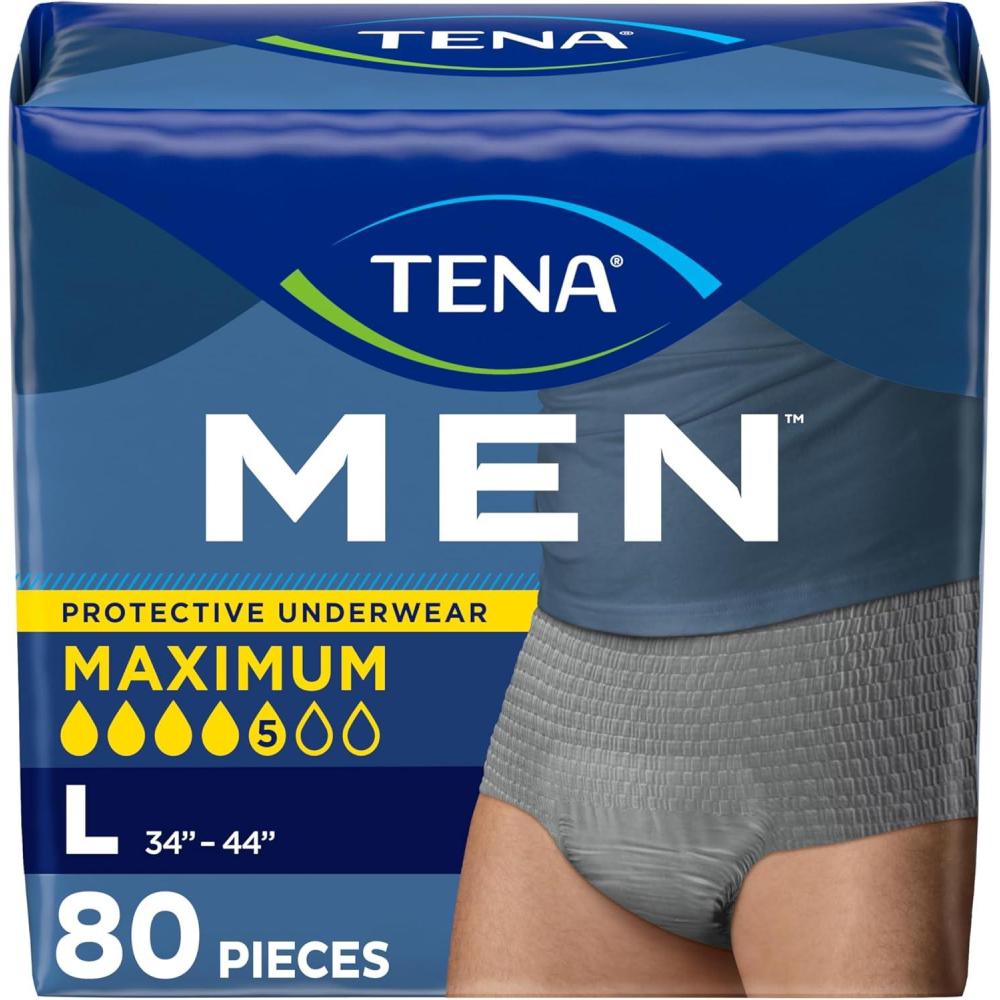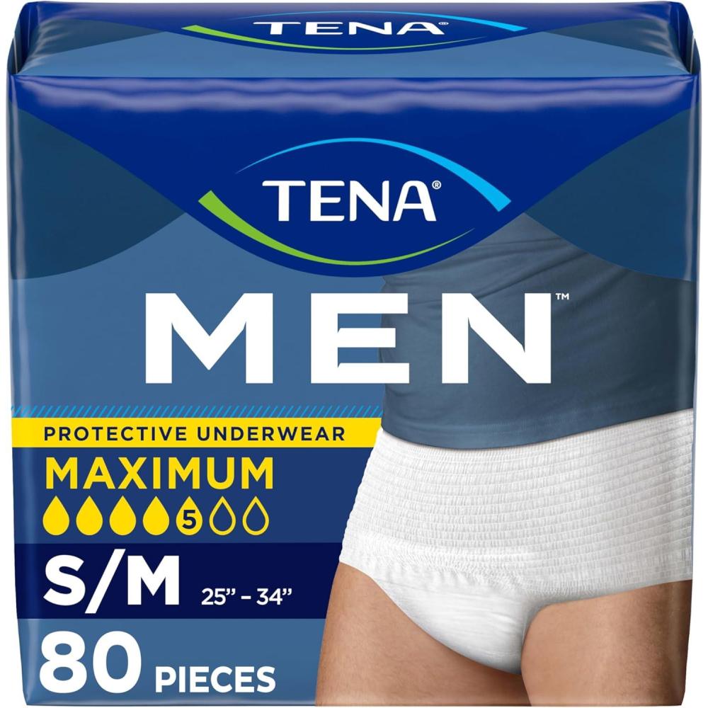 Tena Protective Adult Incontinence Underwear for Men, Maximum, S/M, 80 Count (Waist Size 25in-34in)(Large)