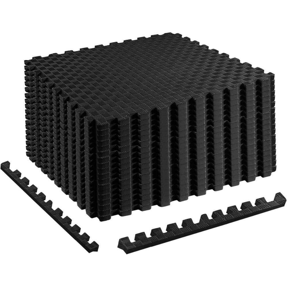 Elevon Puzzle Exercise Gym Flooring Mat, EVA Interlocking Foam Tiles Workout Mat for Home Gym, Fitness Equipment, MMA, Gymnastics, Shock-Absorbing Exercise Mat, Multi-Color(Black)