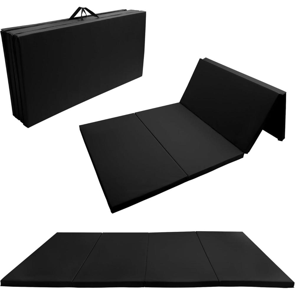 Fitvids 4’x8’x2″ Folding Gymnastics Mat, Home Exercise Mat with Carrying Handles, Gym Workout Tumbling Mat for Yoga, Pilates, Stretching, MMA, Core Workouts, Fitness Aerobics Mats for Gym Training, Multiple Colors(Night-Black)