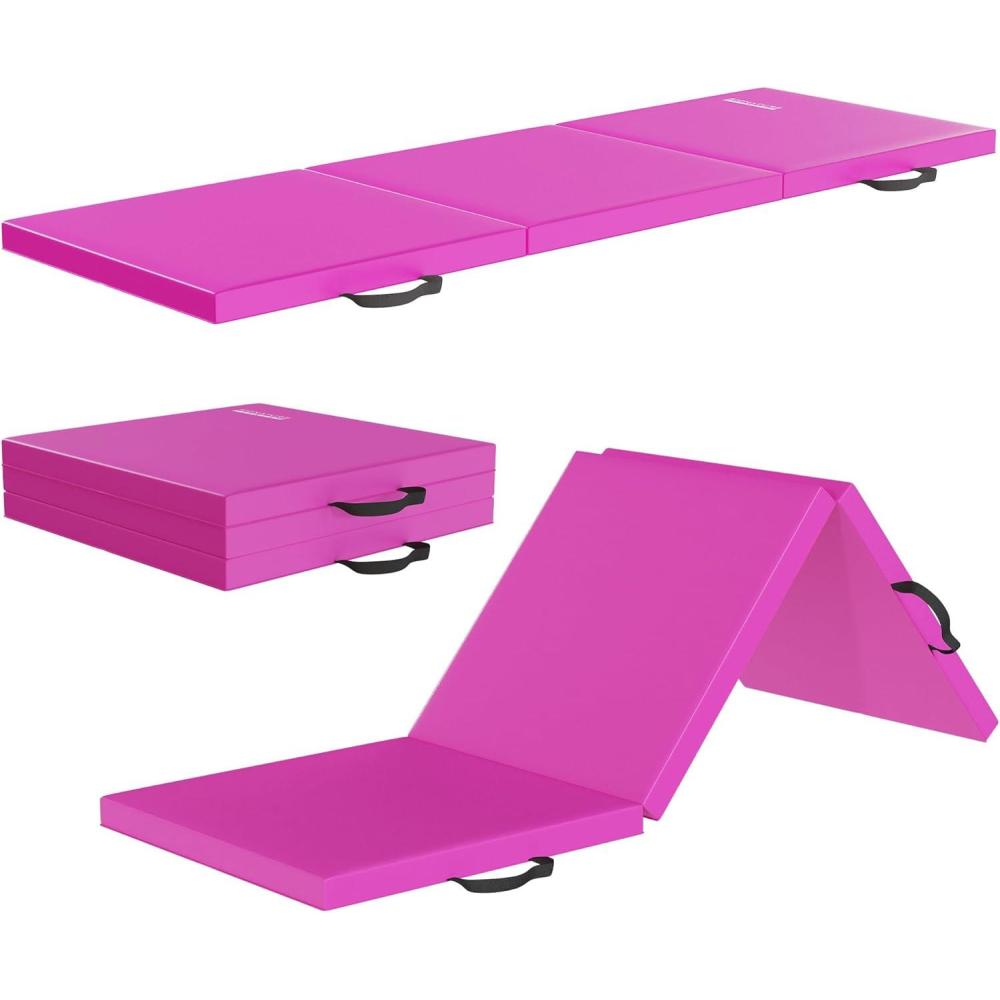Fitvids Folding Exercise Gymnastics Mat for Tumbling, 2’x6’x2″ Gym Workout Mat with Carrying Handles High-Density Anti-Tear Portable Fitness Aerobics Mats for Home Gym Yoga Pilates MMA Core Training(Rose)