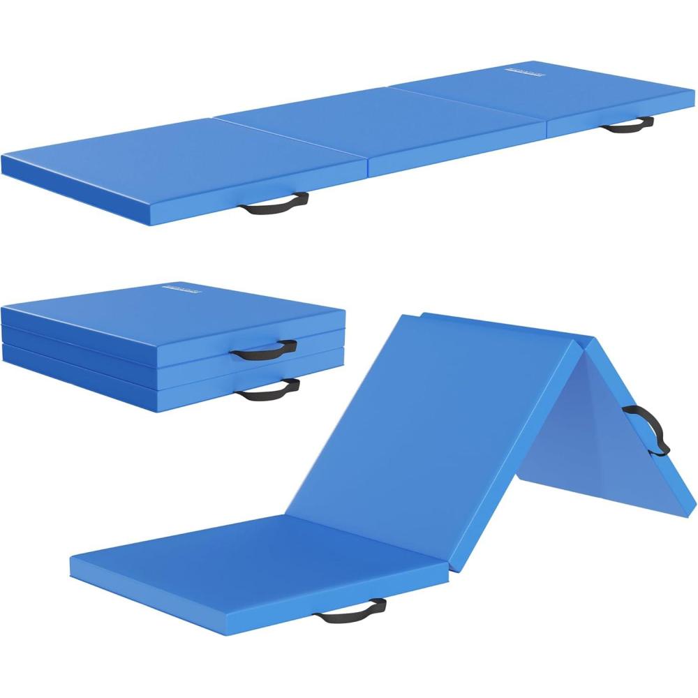 Fitvids Folding Exercise Gymnastics Mat for Tumbling, 2’x6’x2″ Gym Workout Mat with Carrying Handles High-Density Anti-Tear Portable Fitness Aerobics Mats for Home Gym Yoga Pilates MMA Core Training(Blue)